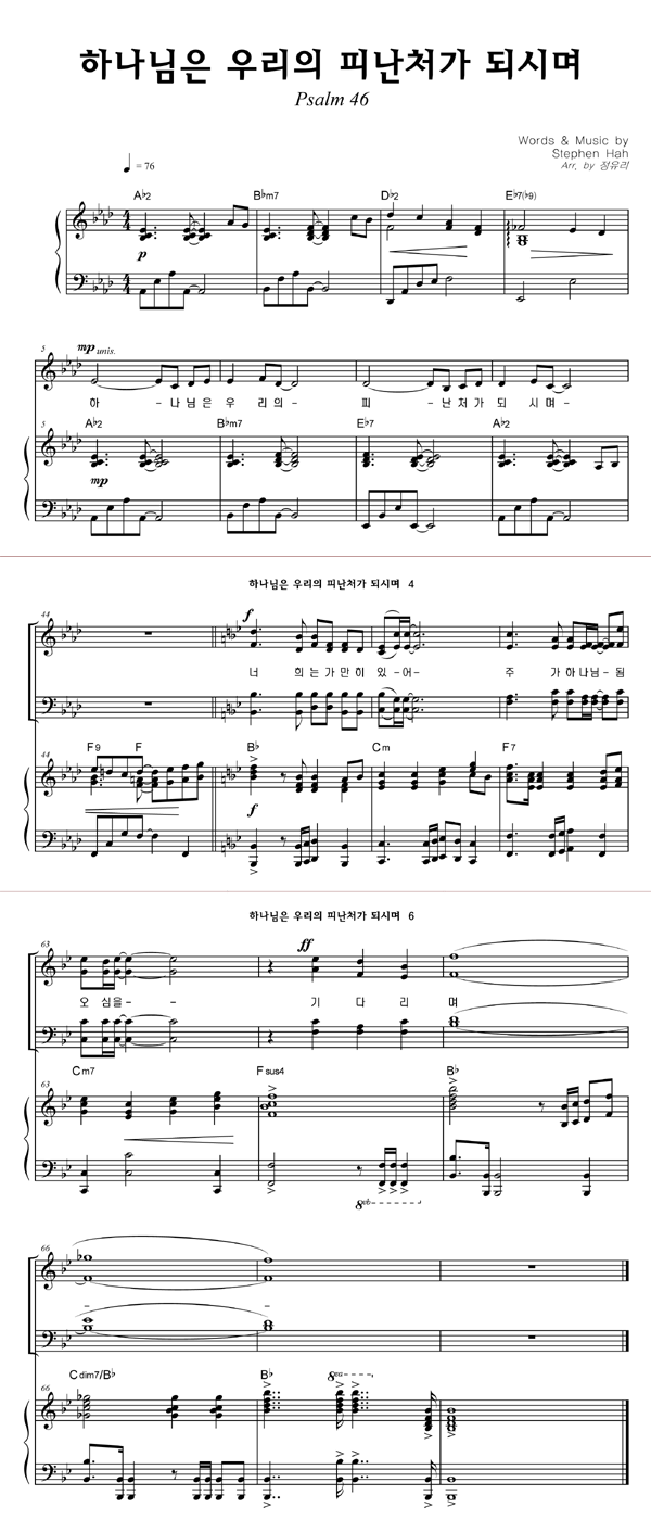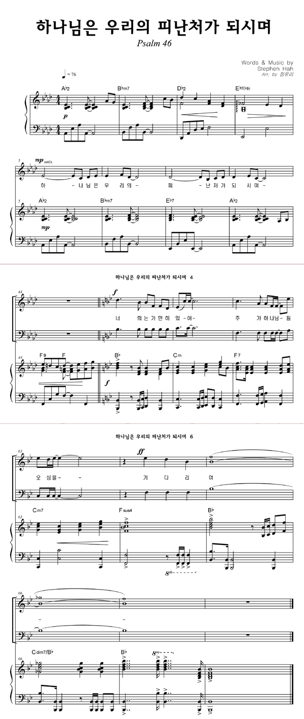 | 하나님은 우리의 피난처가 되시며 | 성가 4부 + 피아노 반주 |