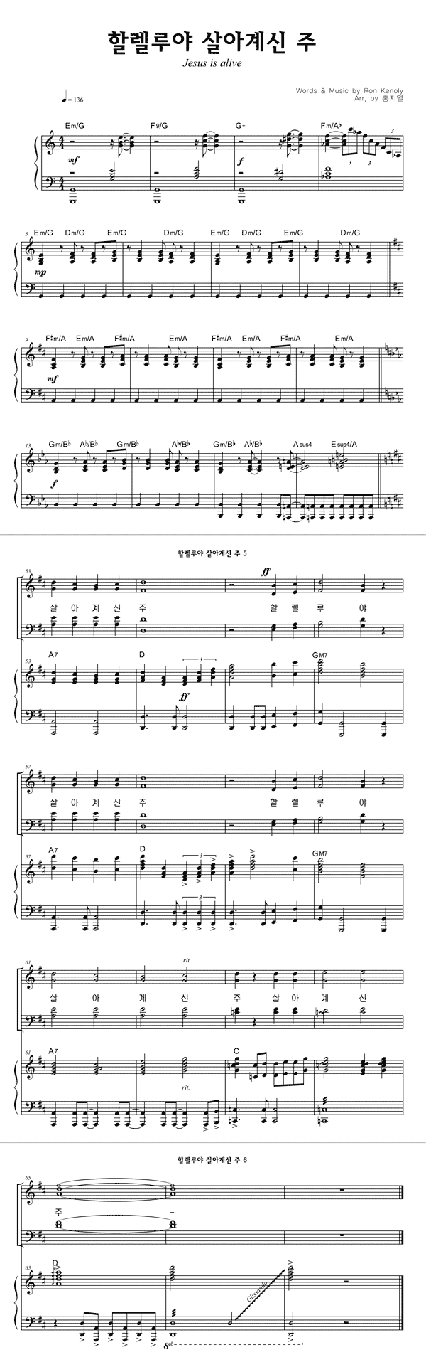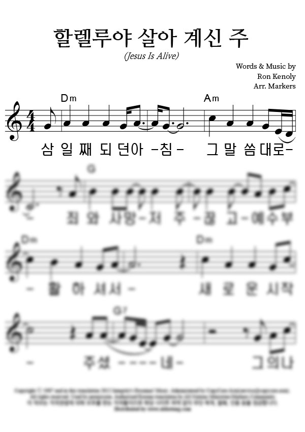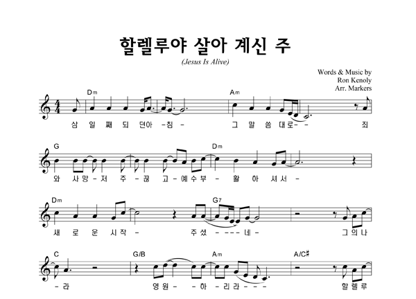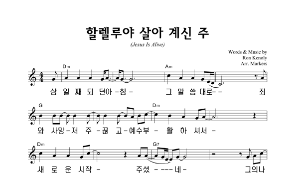 | 할렐루야 살아계신 주 | 단선 |
