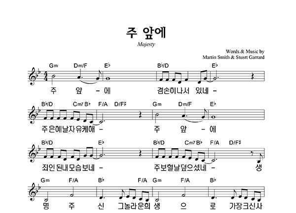 | 지존하신 주님 이름 앞에 큰글씨 | 단선 |