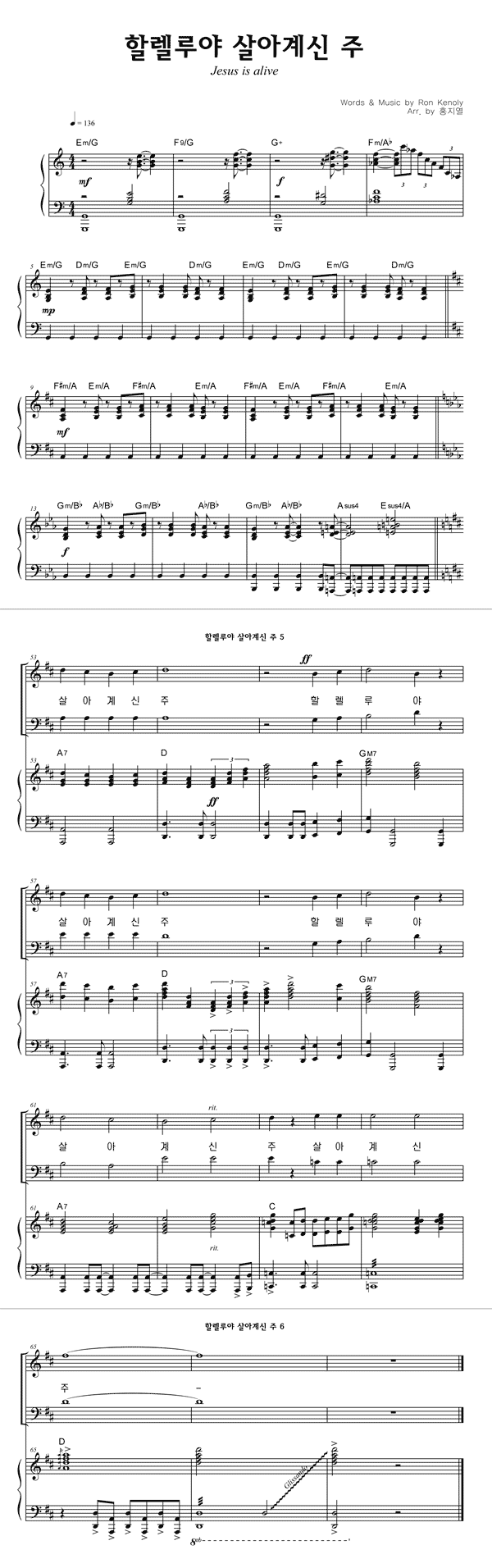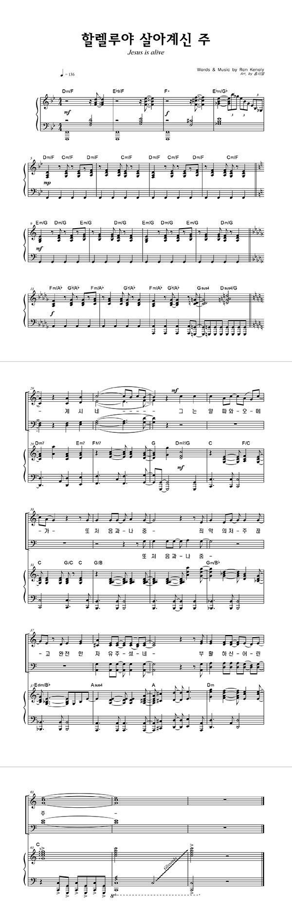 | 할렐루야 살아계신 주 큰글씨 | 성가 4부 + 피아노 반주 |
