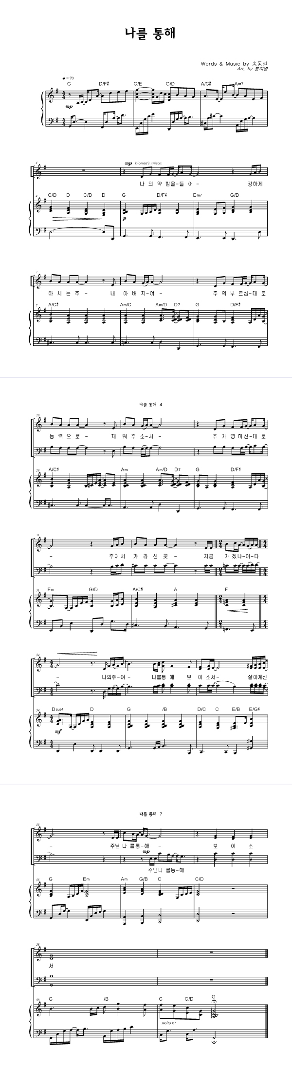 | 나를 통해 큰글씨 | 성가 4부 + 피아노 반주 |