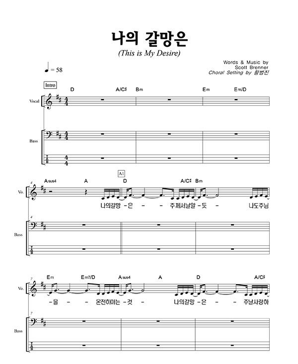 | 나의 갈망은 | 성가 4부 + 피아노 반주 |