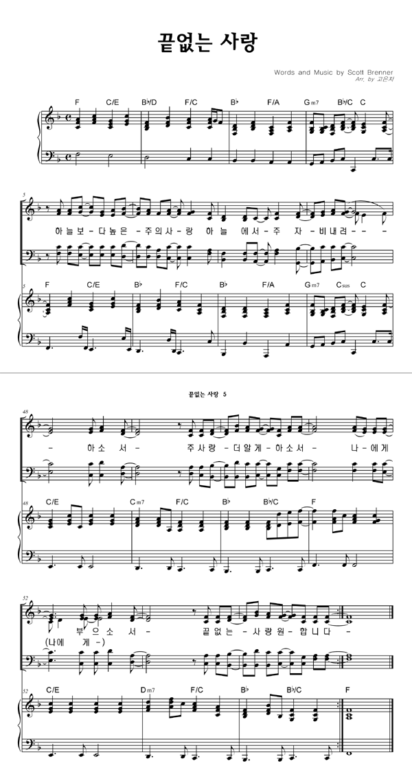 | 끝없는 사랑 | 성가 4부 + 피아노 반주 |