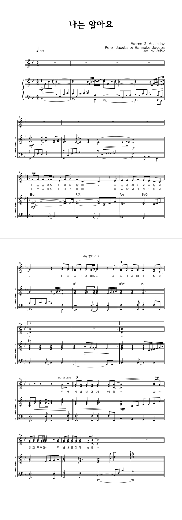 '나는 알아요' 의 다른 악보형식