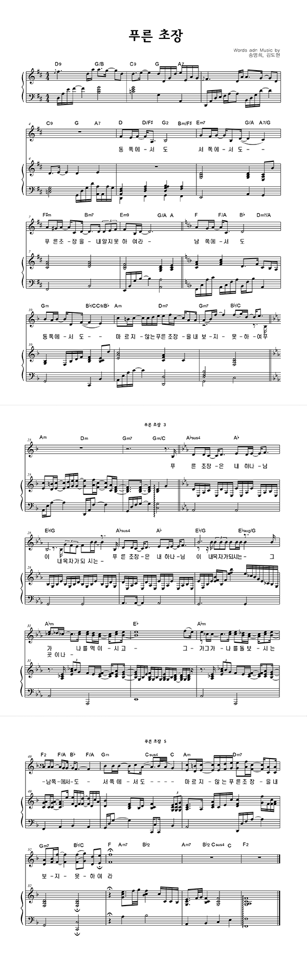 | 푸른 초장 | 성가 2부 + 피아노 반주 |