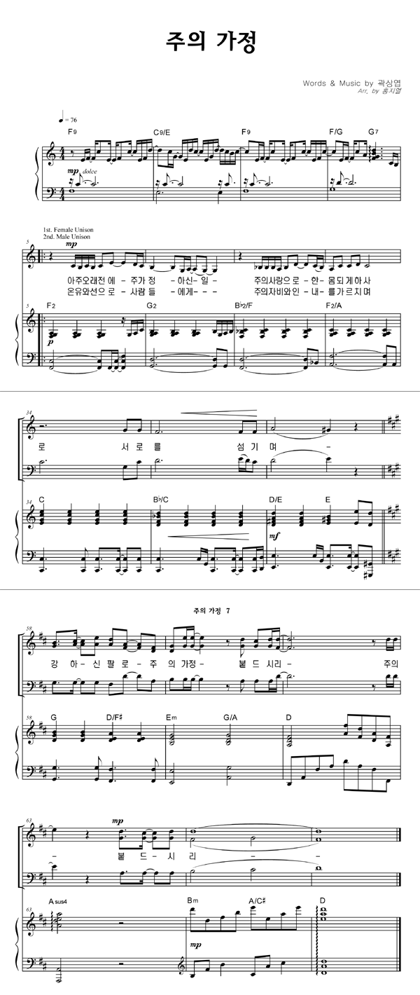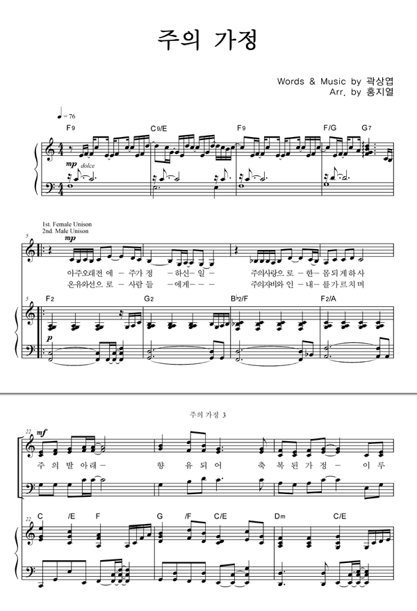 | 주의 가정 | 성가 3부 + 피아노 반주 |