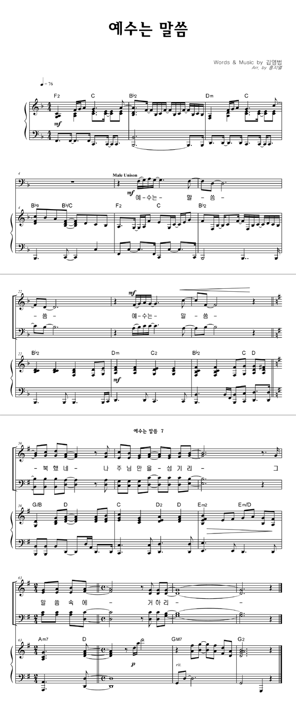 | 예수는 말씀 | 성가 4부 + 피아노 반주 |