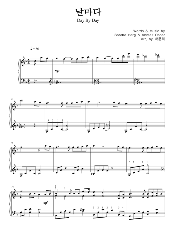 '날마다 숨 쉬는 순간마다' 의 다른 악보형식