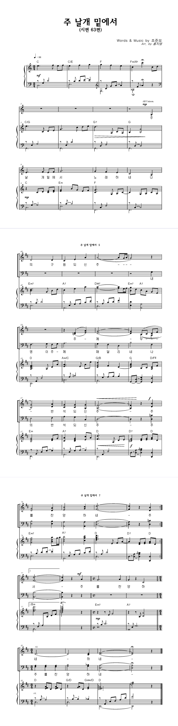 | 주 날개 밑에서 | 성가 4부 + 피아노 반주 |