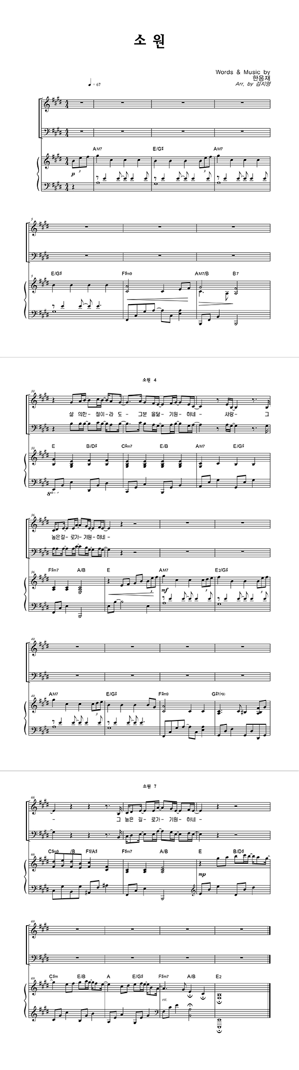 | 소원 큰글씨 | 성가 4부 + 피아노 반주 |