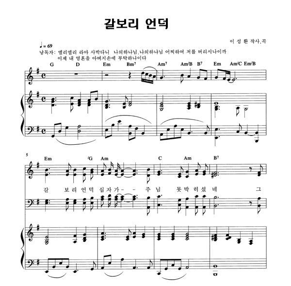 | 갈보리 언덕 | 성가 4부 + 피아노 반주 |