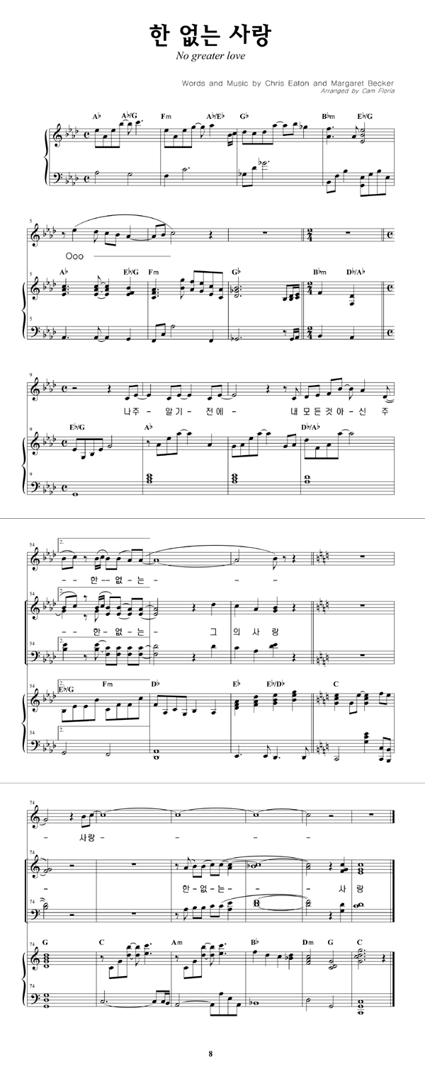 | 한 없는 사랑 | 성가 4부 + 피아노 반주 |
