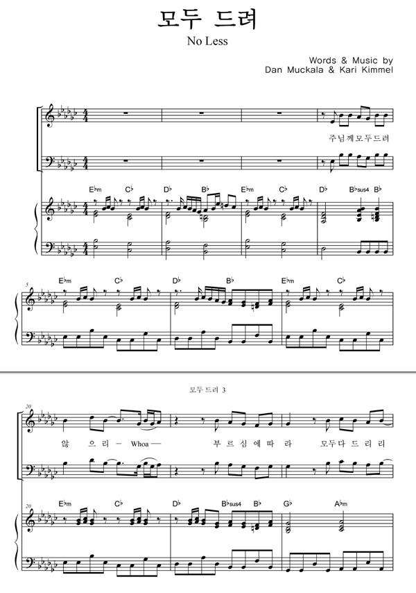 | 모두 드려 | 성가 2부 + 피아노 반주 |