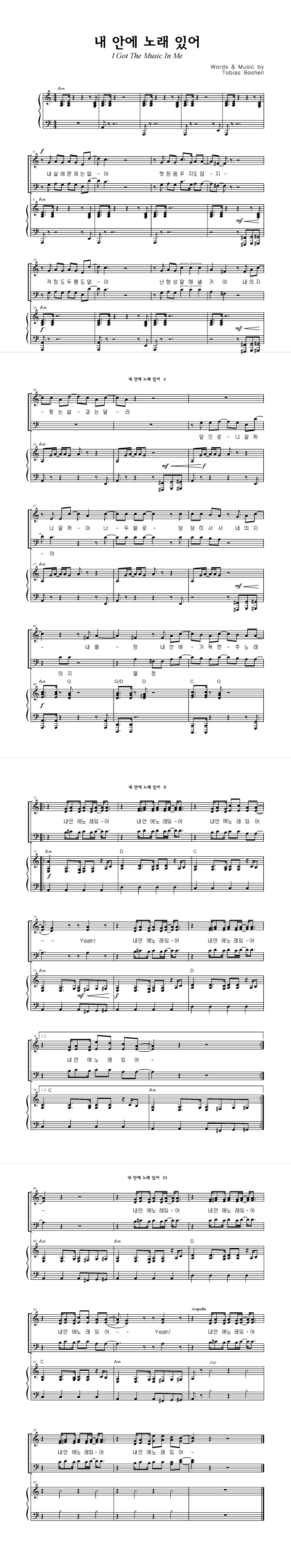 '내 안에 노래 있어' 의 다른 악보형식