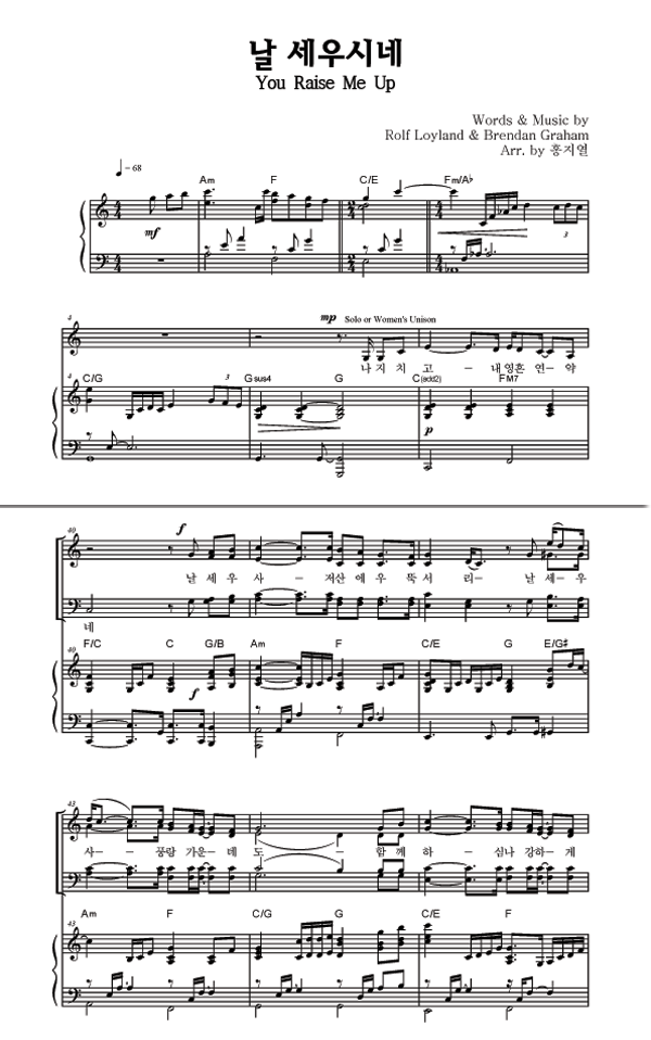 | 나 주님만 | 성가 4부 + 피아노 반주 |