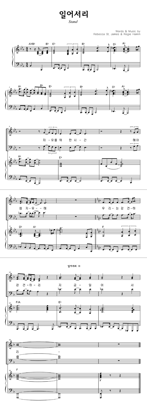 | 일어서리 | 성가 4부 + 피아노 반주 |