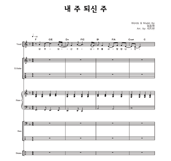 | 주님 한 분 만으로 | 성가 4부 + 피아노 반주 |