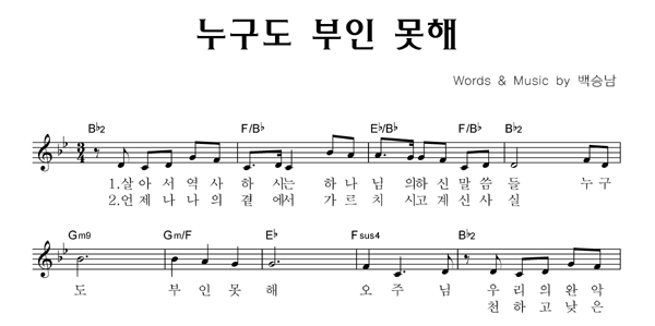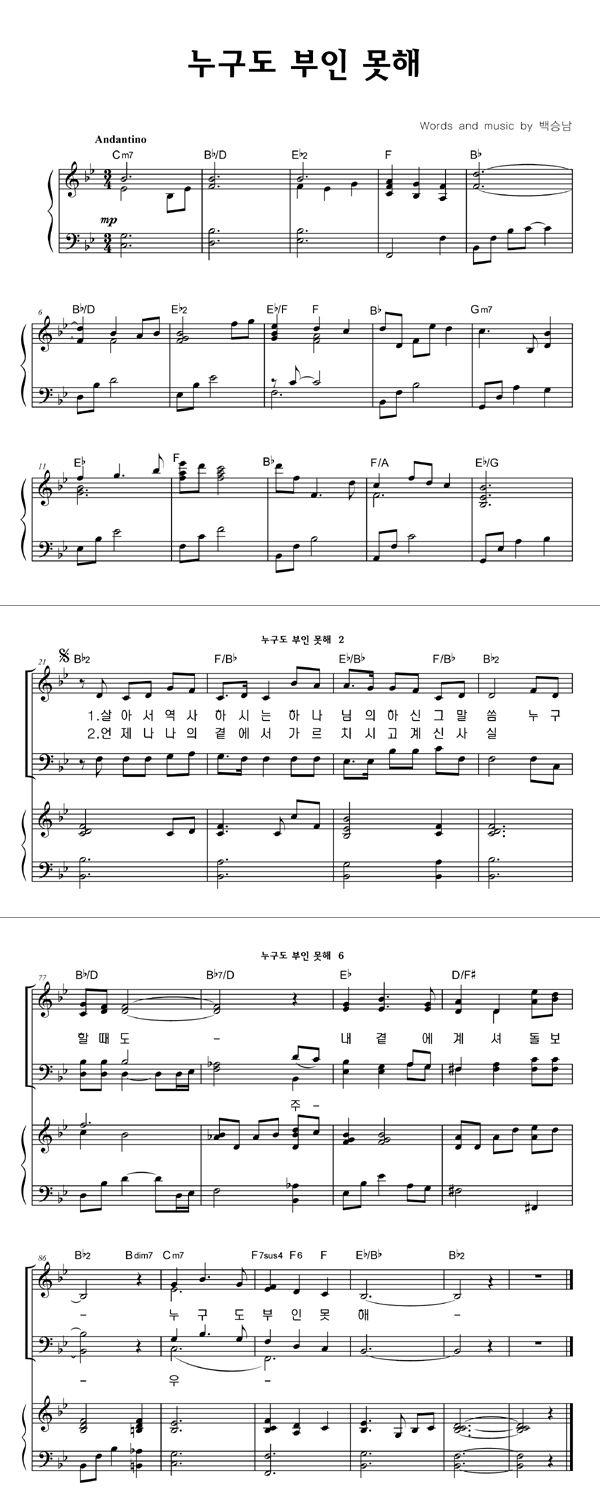 | 누구도 부인 못해 큰글씨 | 성가 4부 + 피아노 반주 |