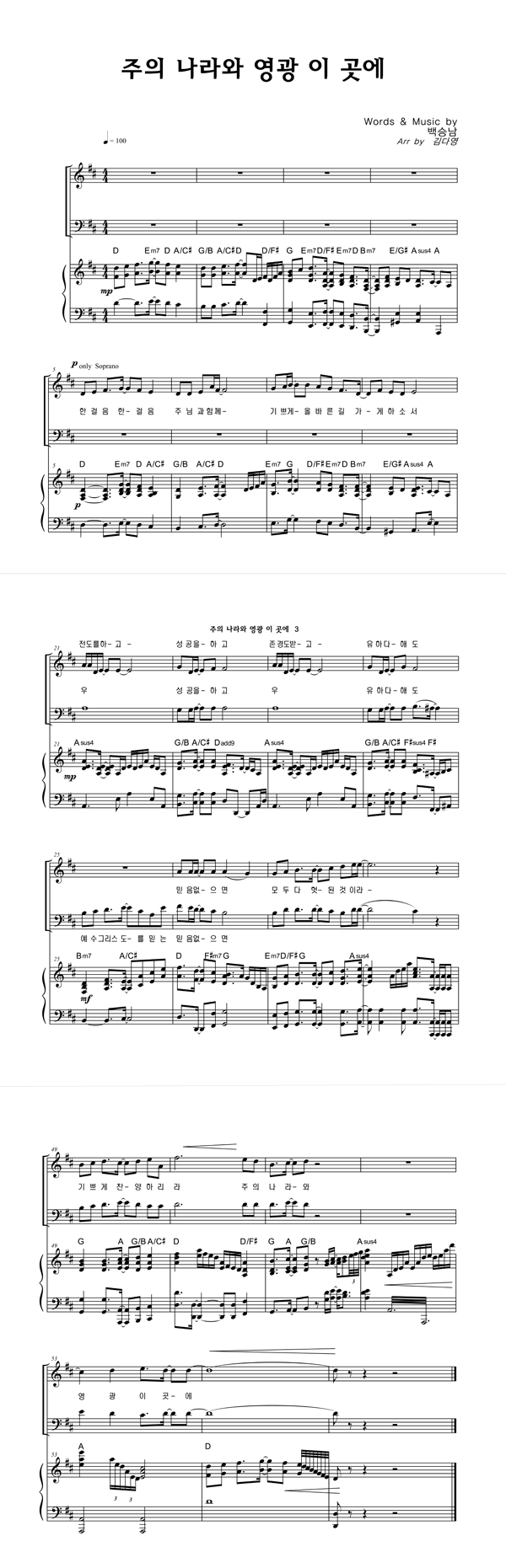 | 주의 나라와 영광 이곳에 | 성가 2부 + 피아노 반주 |
