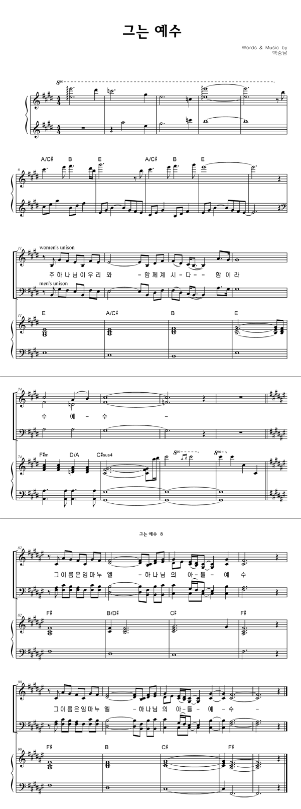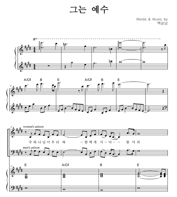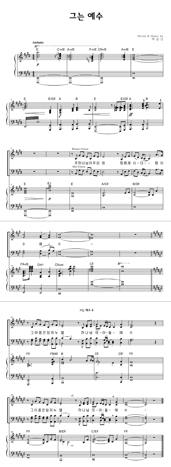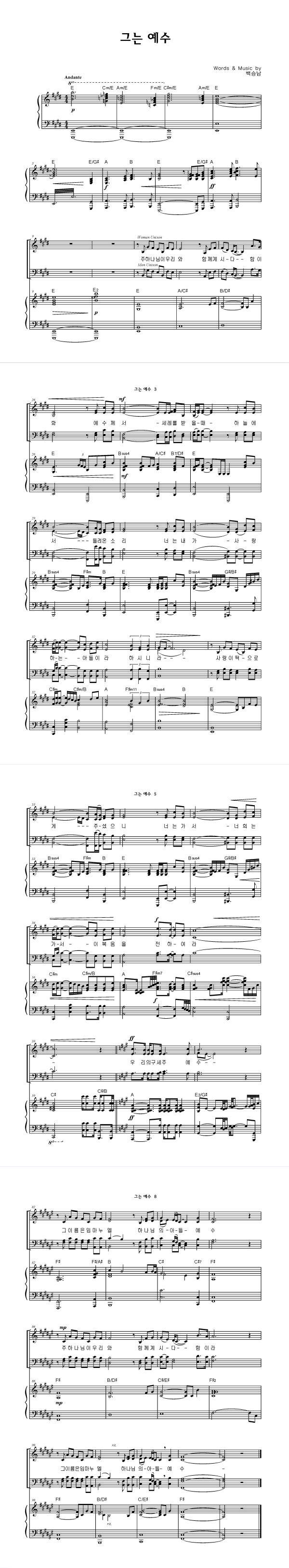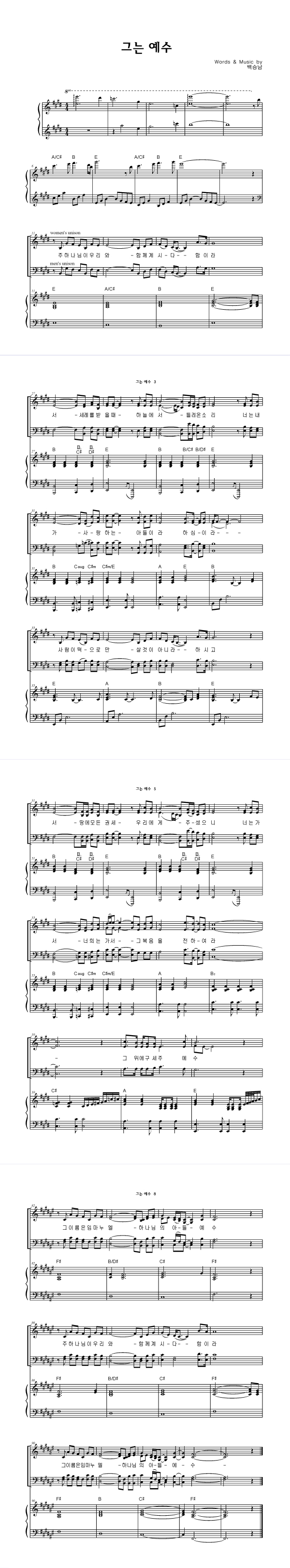| 그는 예수 | 성가 4부 + 피아노 반주 |