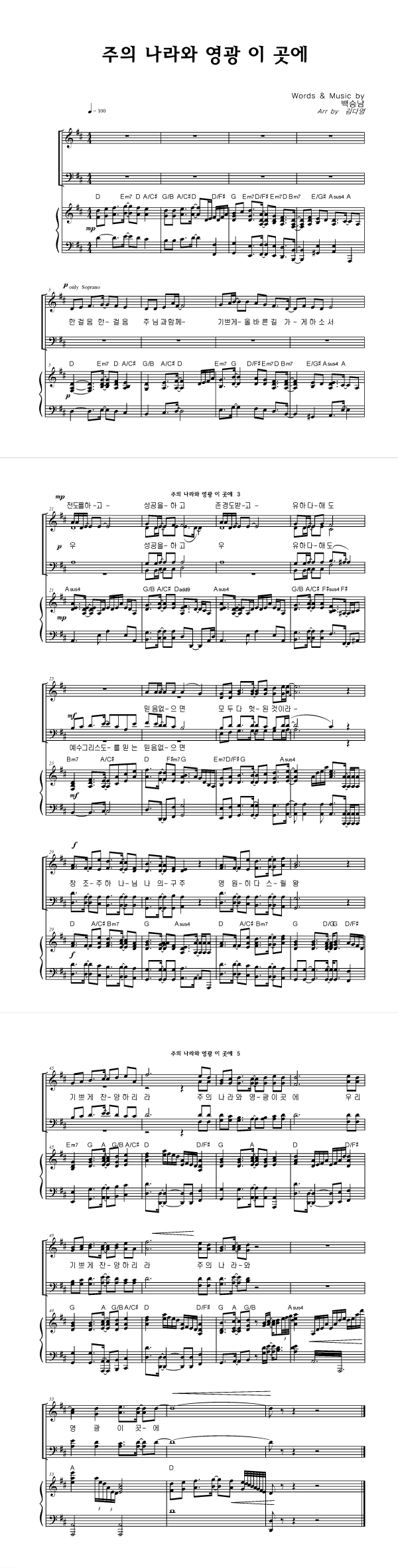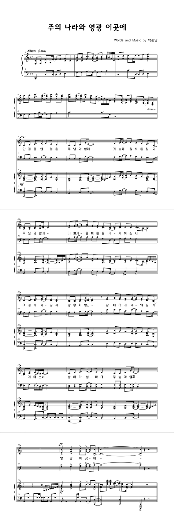 | 주의 나라와 영광 이곳에 | 성가 3부 + 피아노 반주 |