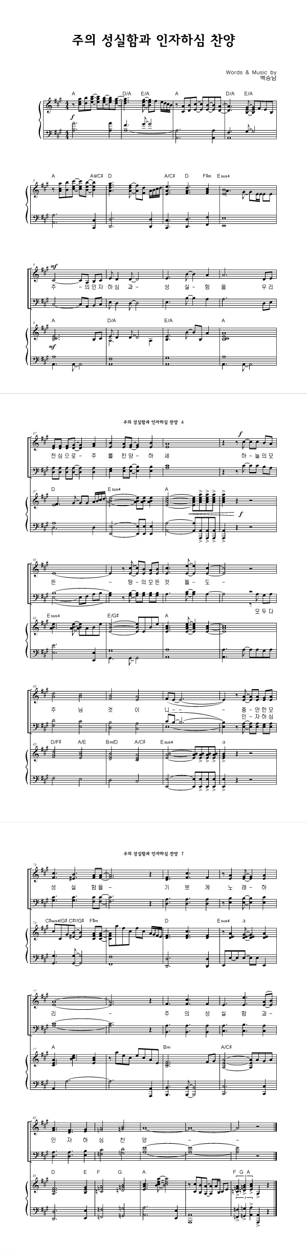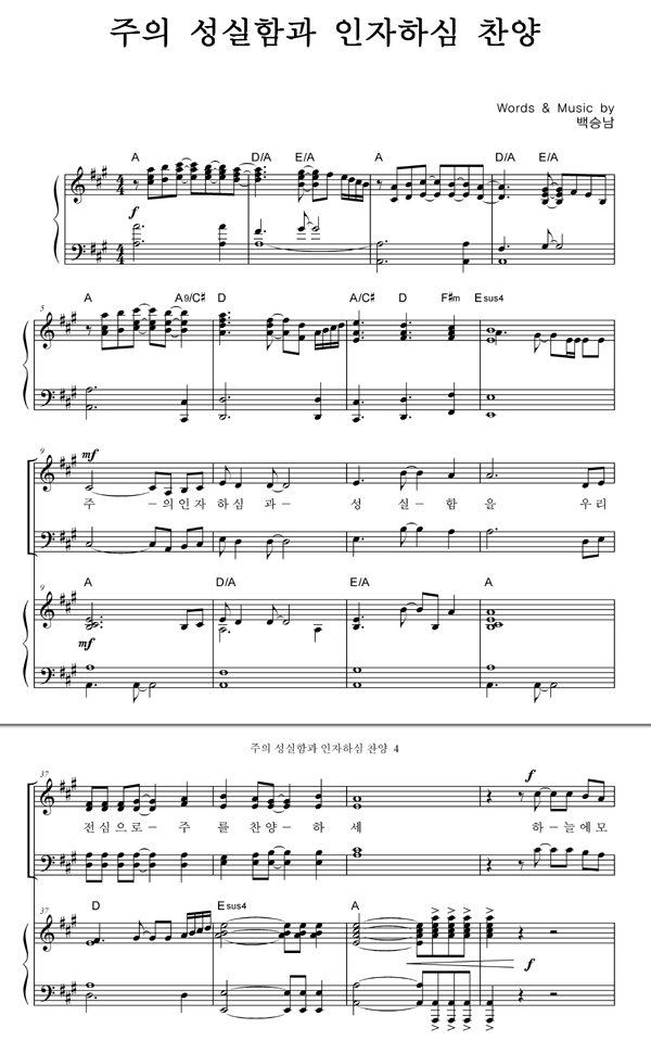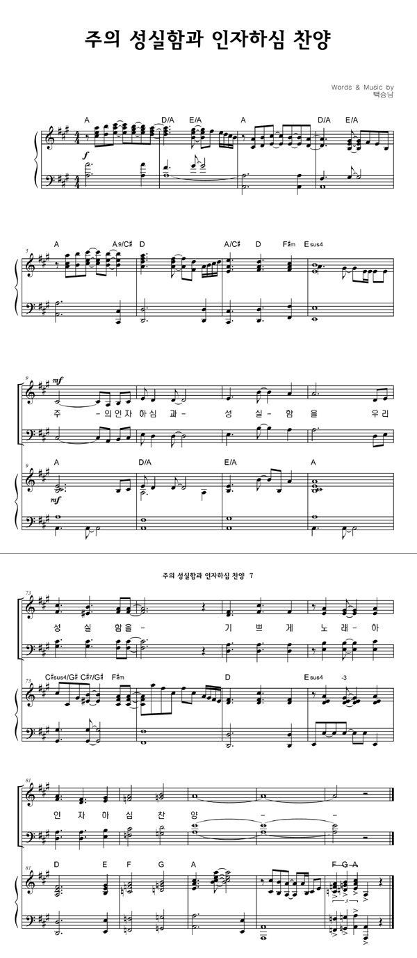 | 주의 성실함과 인자하심 찬양 | 성가 4부 + 피아노 반주 |