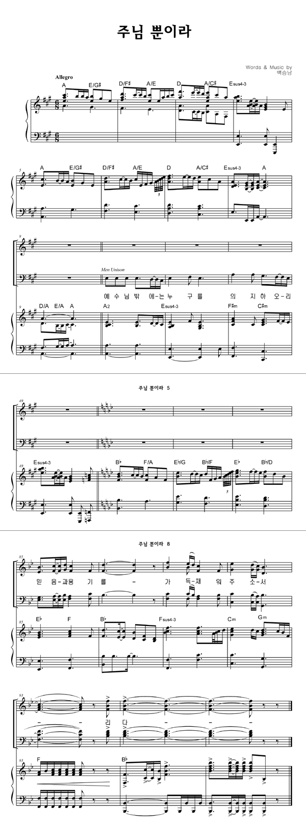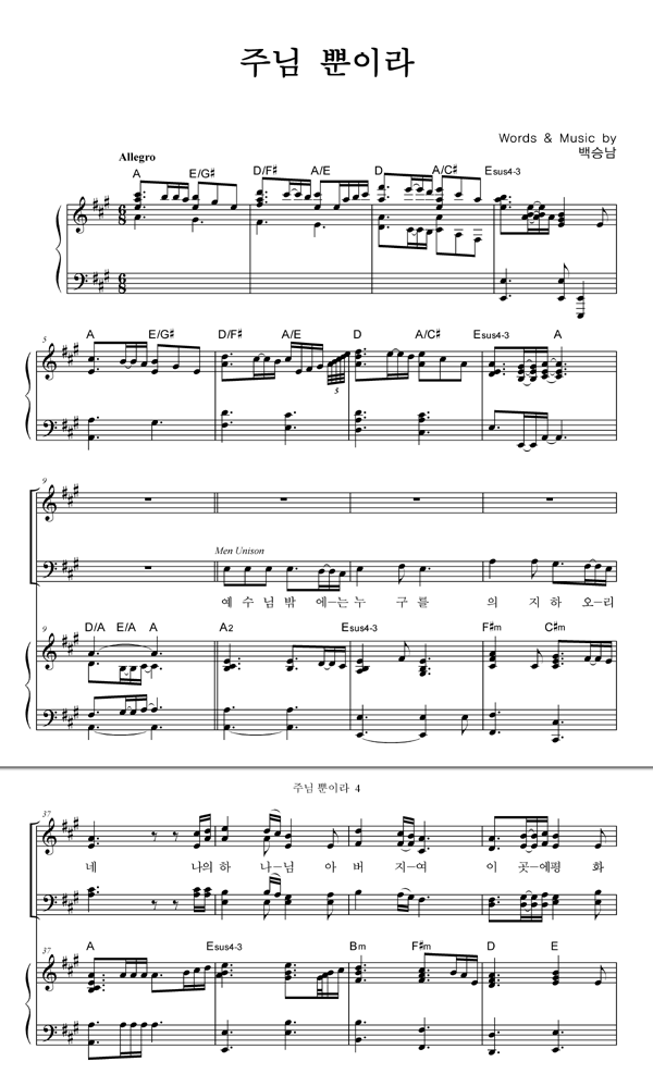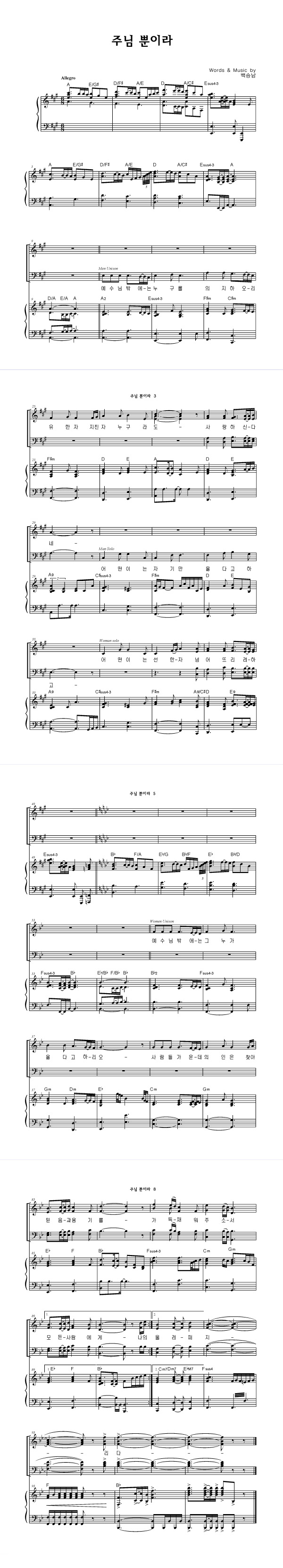 | 주님 뿐이라 | 성가 4부 + 피아노 반주 |