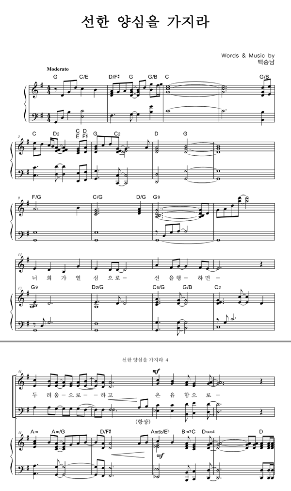 | 선한 양심을 가지라 | 성가 4부 + 피아노 반주 |