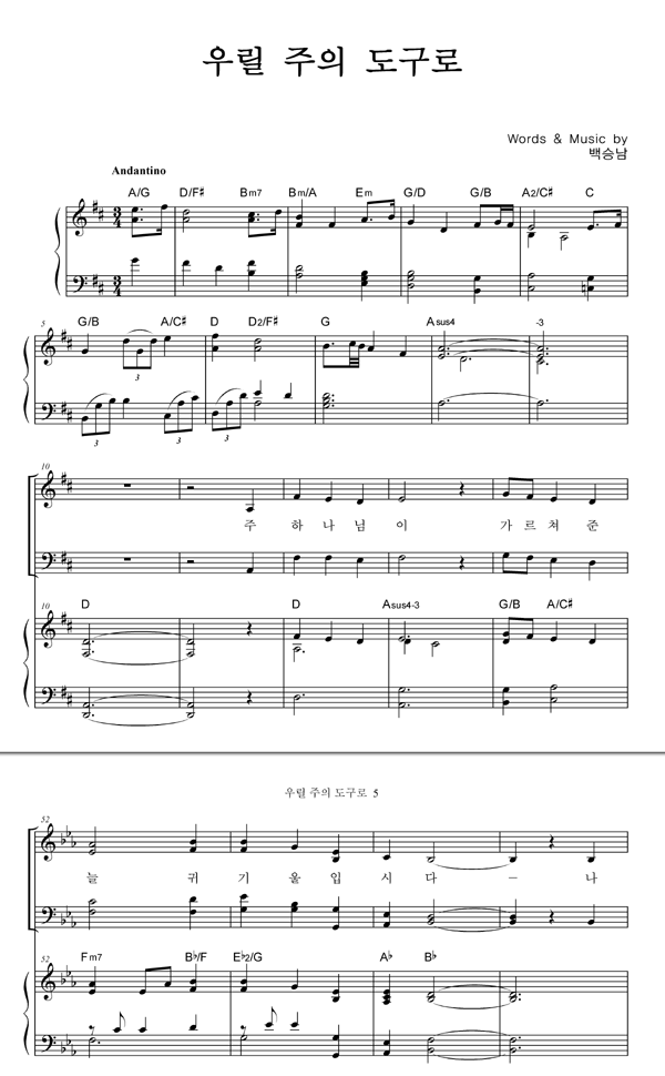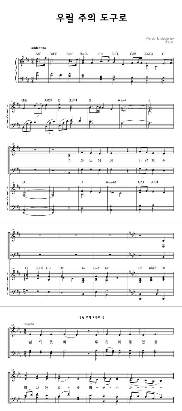 | 우릴 주의 도구로 | 성가 4부 + 피아노 반주 |