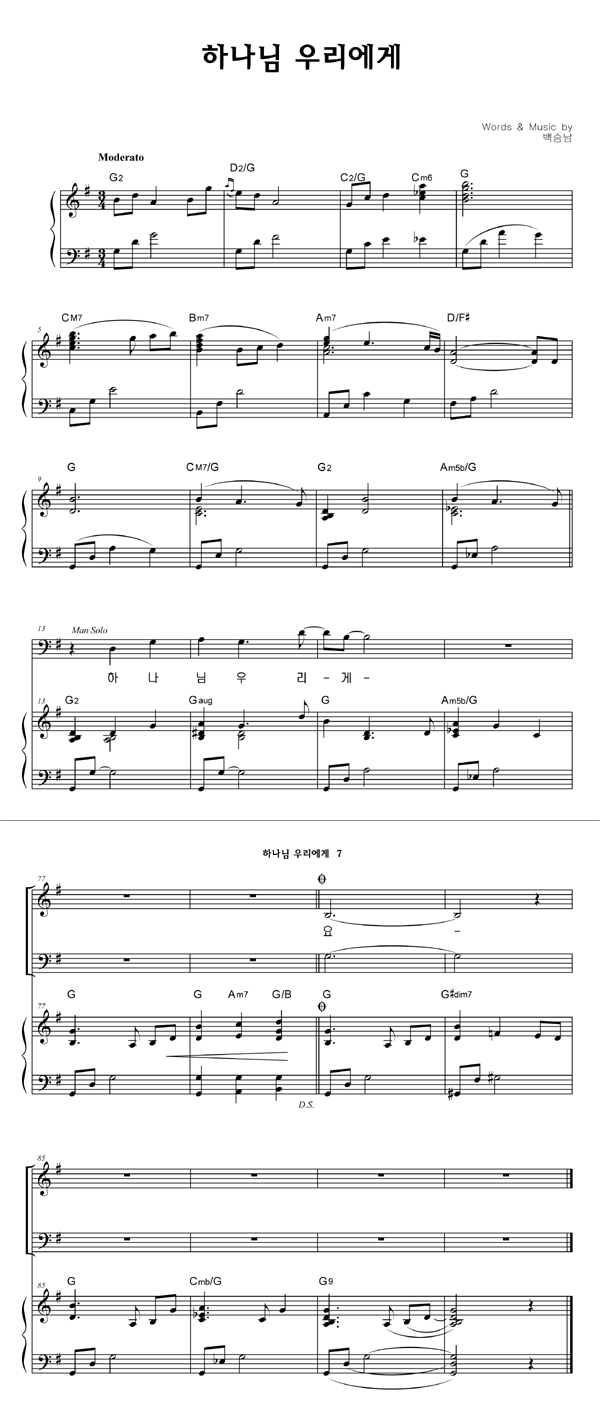 | 하나님 우리에게 | 성가 2부 + 피아노 반주 |
