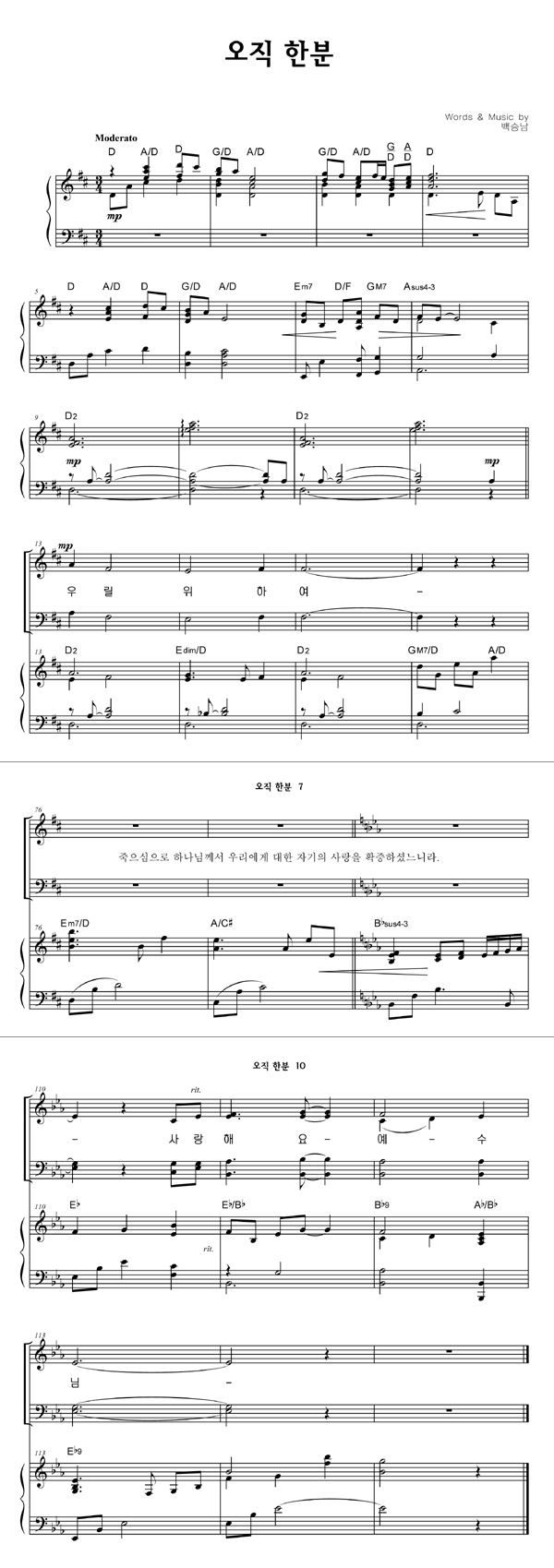 | 오직 한분 | 성가 4부 + 피아노 반주 |