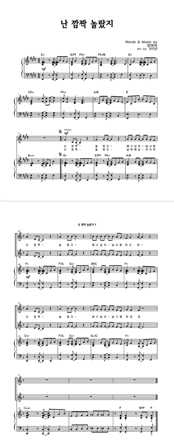 | 난 깜짝 놀랐지 | 성가 2부 + 어린이 |