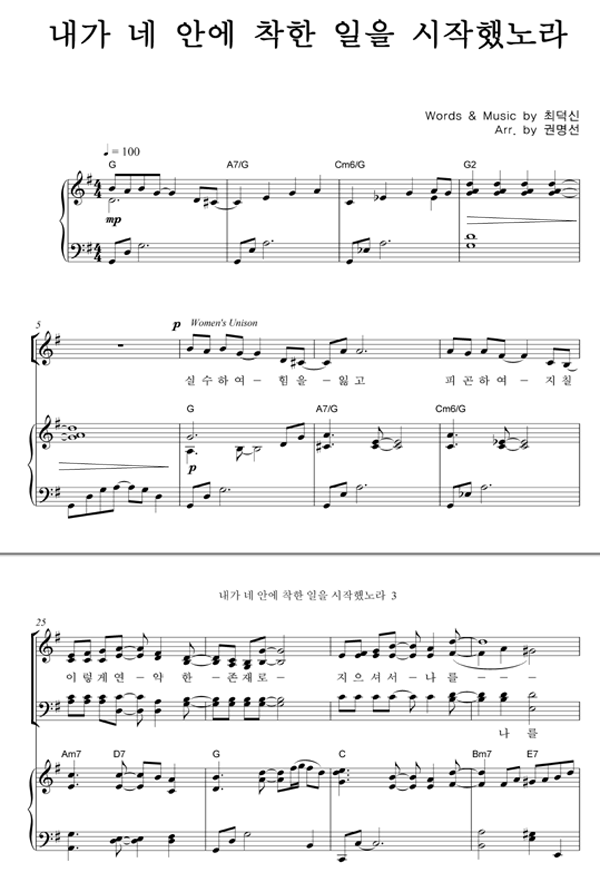 | 내가 네 안에 착한 일을 시작했노라 | 성가 4부 + 피아노 반주 |