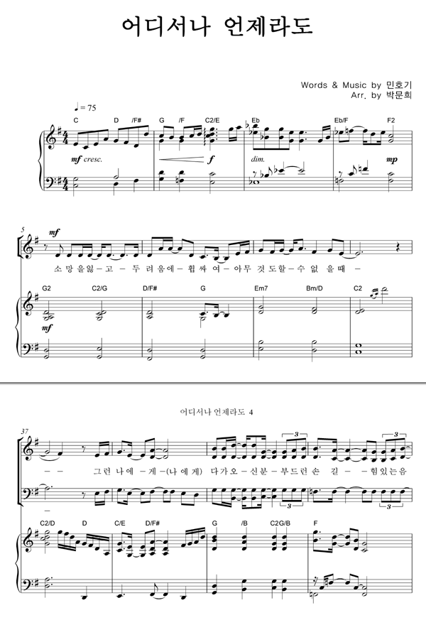 | 어디서나 언제라도 | 성가 4부 + 피아노 반주 |