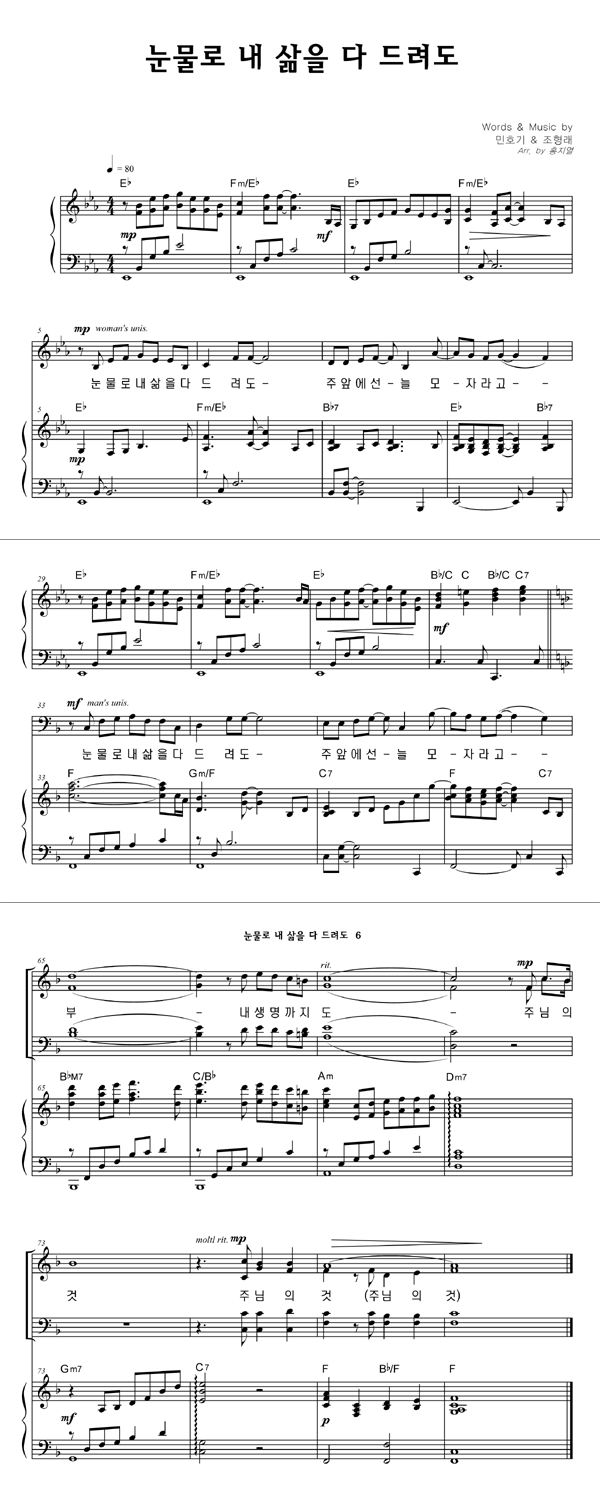 | 눈물로 내 삶을 다 드려도 | 성가 4부 + 피아노 반주 |