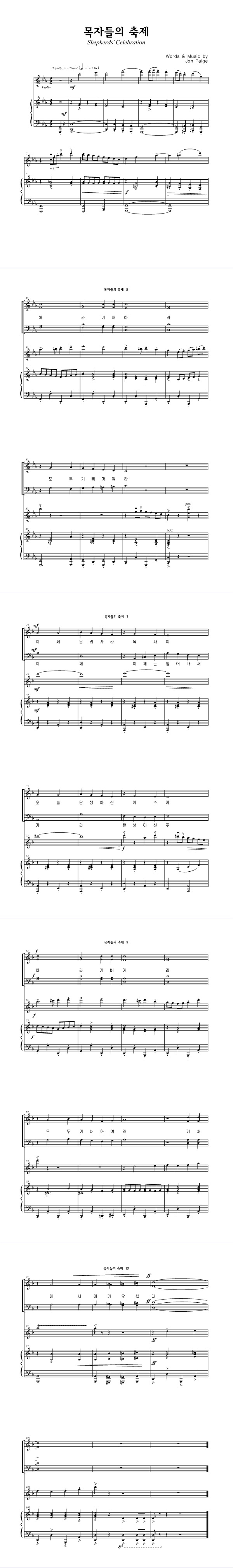 '목자들의 축제' 의 다른 악보형식