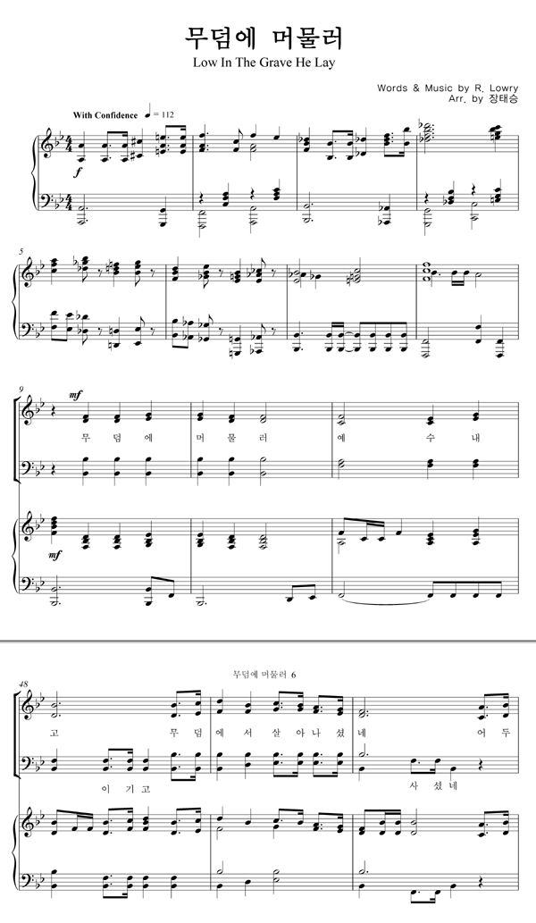 | 무덤에 머물러 (찬송가 160장) | 성가 3부 + 피아노 반주 |
