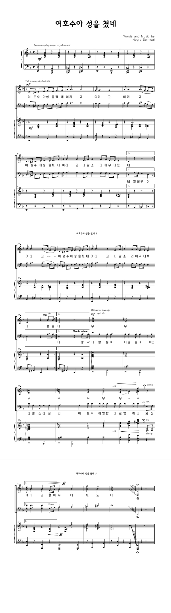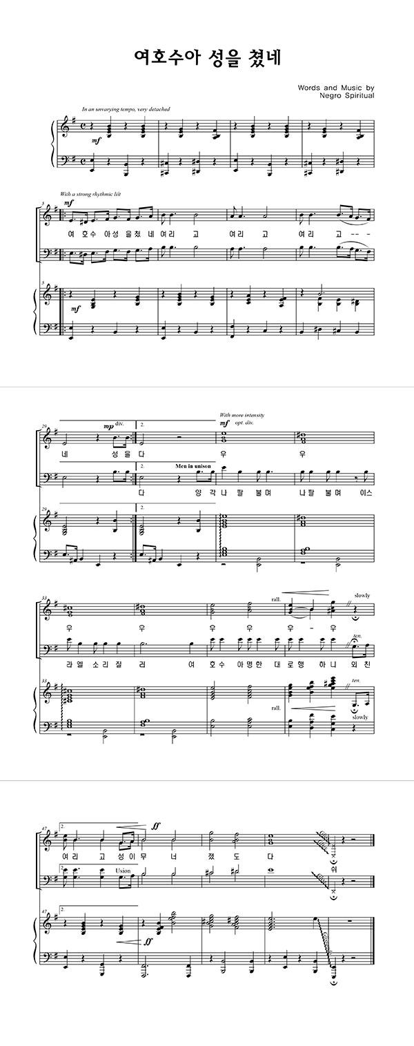 | 여호수아 성을 쳤네 | 성가 4부 + 피아노 반주 |