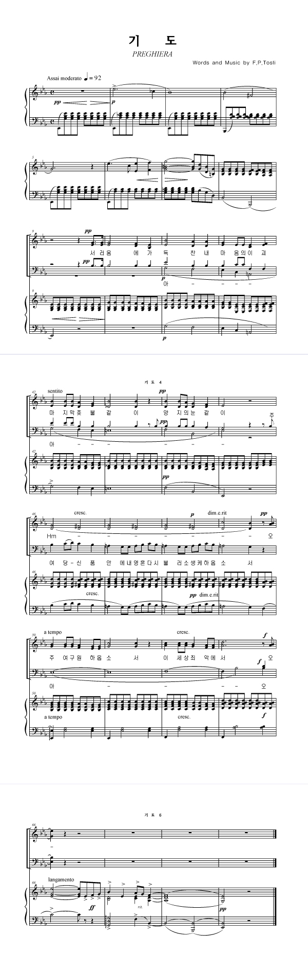 | 기도 | 성가 4부 + 피아노 반주 |