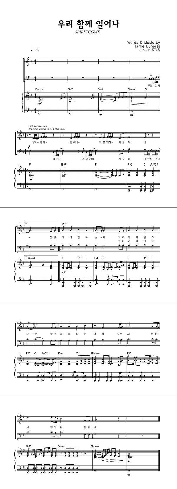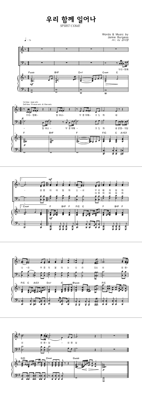 | 성가 2부 + 피아노 반주 |
