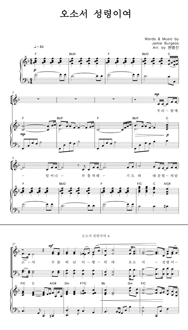 | 오소서 성령이여 | 성가 4부 + 피아노 반주 |