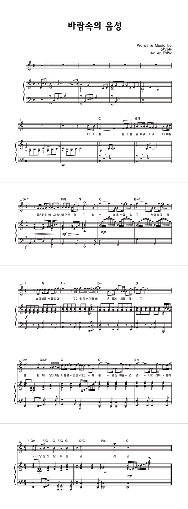| 물위를 걸어오라 | 성가 3부 + 피아노 반주 |