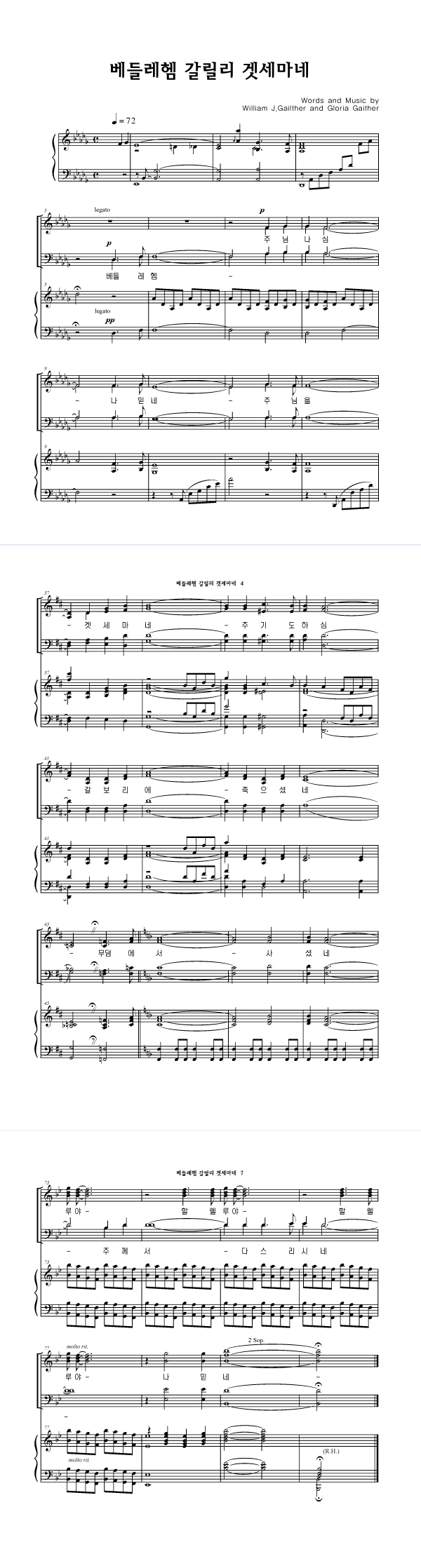 '베들레헴 갈릴리 겟세마네' 의 다른 악보형식