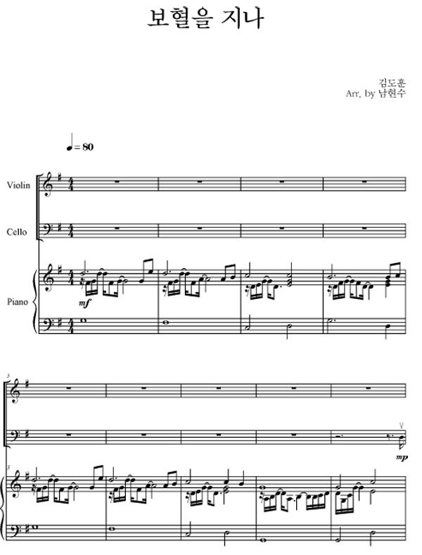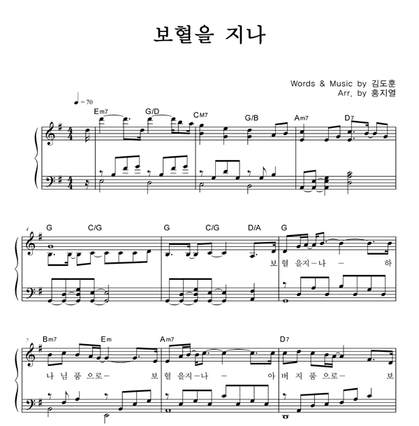 | 보혈을 지나 | 성가 3부 + 피아노 반주 |