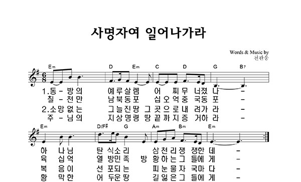 | 사명자여 일어나 가라 큰글씨 | 단선 |