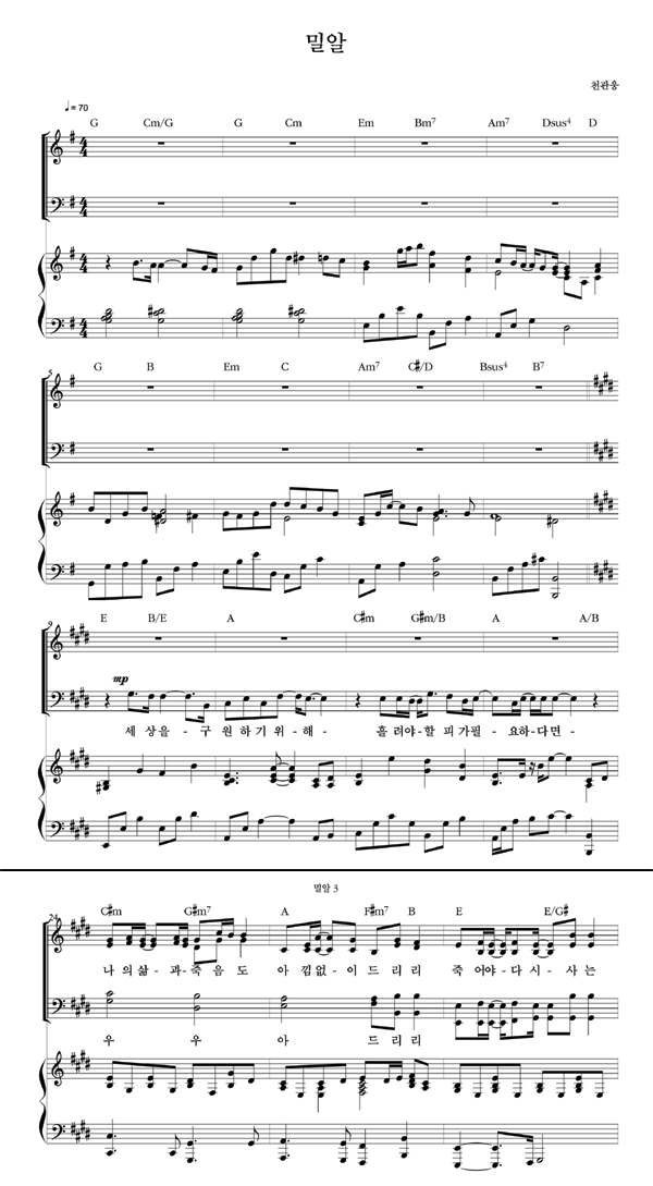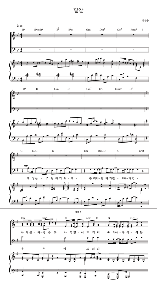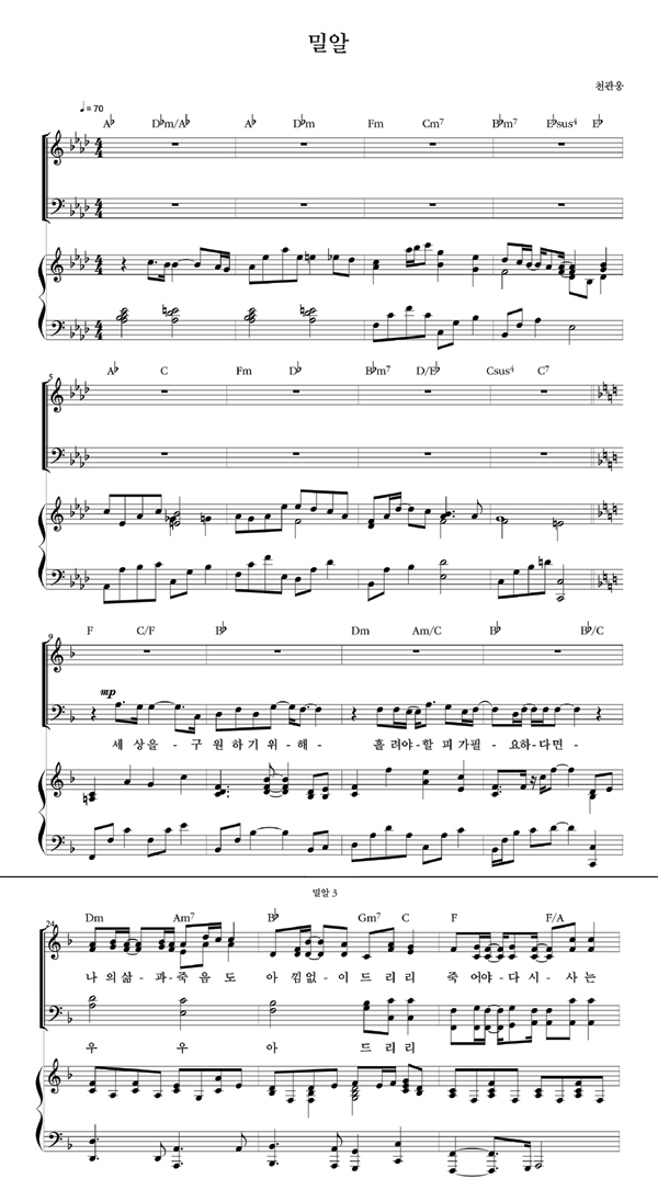 | 밀알 | 성가 3부 + 피아노 반주 |