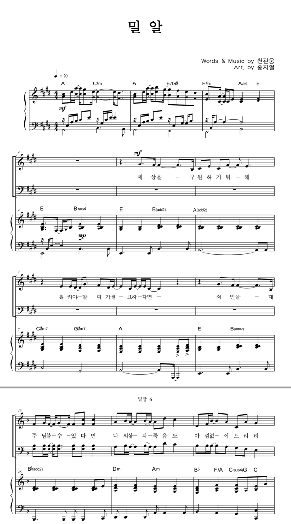 | 밀알 | 성가 2부 + 피아노 반주 |