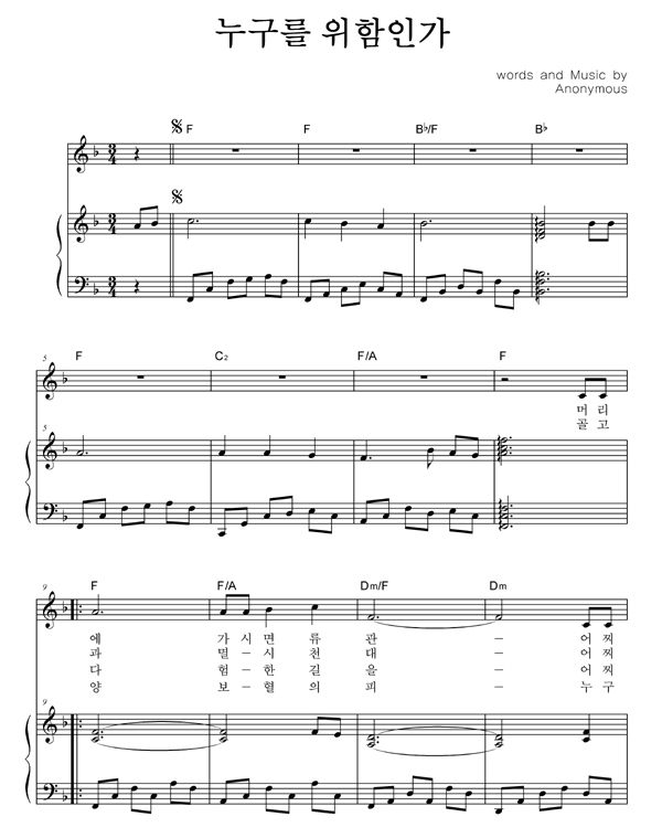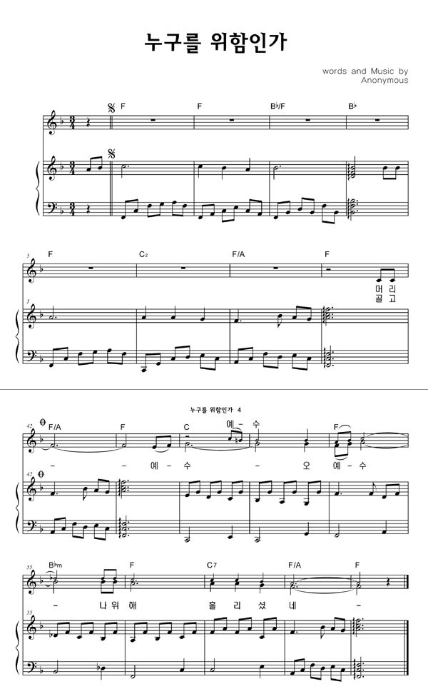 | 누구를 위함인가 | 성가 2부 + 피아노 반주 |