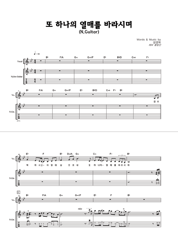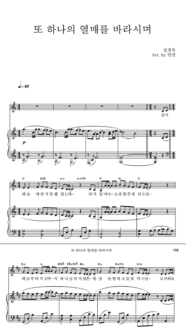 | 또 하나의 열매를 바라시며 | 성가 2부 + 피아노 반주 |