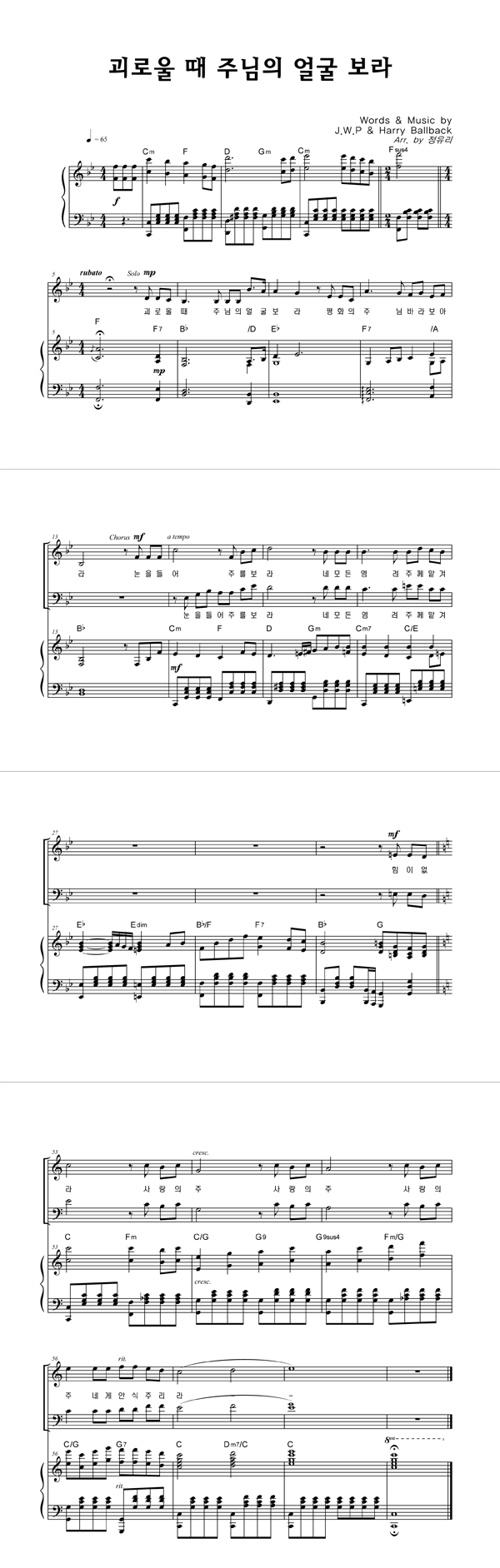 | 괴로울 때 주님의 얼굴 보라 | 성가 4부 + 피아노 반주 |